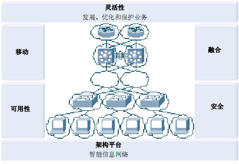 企业园区解决方案的设计目的是满足很多企业目前最主要的目标:保护、优化和发展他们的业务。企业园区解决方案结合了一个包含智能交换和路由的基础设施,以及多种有助于提升生产率的技术。例如IP通信、移动和强化安全特性。这样的完美结合使得企业可以部署一个永续网络,从而能够迅速地适应不断变化的要求,快速、安全地支持新兴的应用,以及通过改善对信息和通信的访问而简化流程。